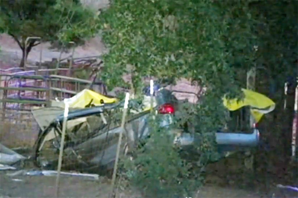 도로를 벗어난 미니밴 차량이 나무를 들이 받아 형체를 알아 볼 수 없을 정도로 파손된 모습. 사진 ABC뉴스 캡처.