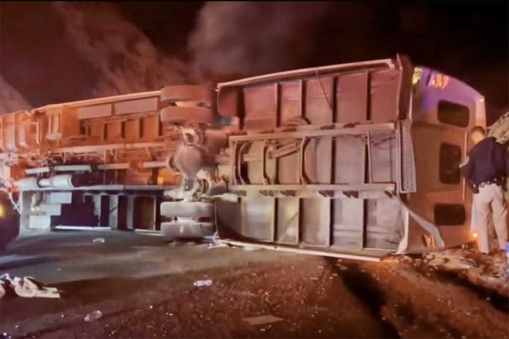 사고는 9일 밤 8시 50분경, 로스앤젤레스에서 북동쪽으로 약 70마일 떨어진 러닝스프링스 인근에서 일어났다. 총 36명이 타고 있던 버스는 내리막 커브 구간에서 갑자기 흔들리기 시작했고, 좌우로 크게 흔들린 뒤 도로 오른편 바위 절벽에 부딪혀 옆으로 넘어졌다. 캘리포니아 고속도로순찰대(CHP)는 “원인을 알 수 없는 이유로 운전자가 바위 비탈면에 부딪히면서 전복됐다”고 밝혔다.