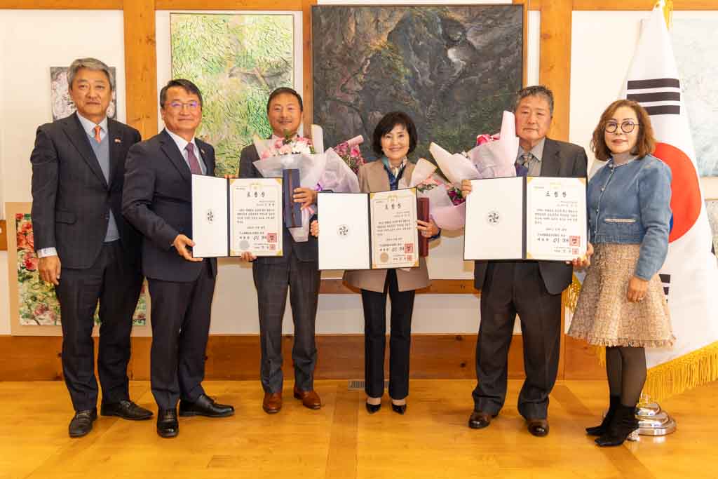 전수식에 앞서 임정택 총영사는 수상자들에게 축하의 인사를 전했다. 임 총영사는 “장기간에 걸쳐 지역사회와 주류사회를 아우르며 평화통일 공감대 확산에 기여해 온 노고에 깊이 감사드린다”며 “이번 수상이 개인의 성취를 넘어 한인사회 전체의 자긍심으로 이어지길 바란다”고 밝혔다.