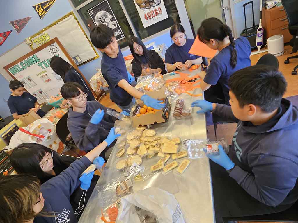 케이센터는 베이지역 한인과 다양한 이민 커뮤니티를 대상으로 영양 프로그램, 건강·웰빙 활동, 교육 세미나 등 폭넓은 사회복지 서비스를 제공하는 기관이다. 이날 봉사에 참여한 주니어 리더스 학생들은 먼저 어르신들을 위한 간식 나눔백 만들기로 활동을 시작했다. 나눔백에는 티백, 쌀과자, 한국 전통 간식, 그리고 학생들이 직접 작성한 따뜻한 명절 인사 카드가 담겼다.
