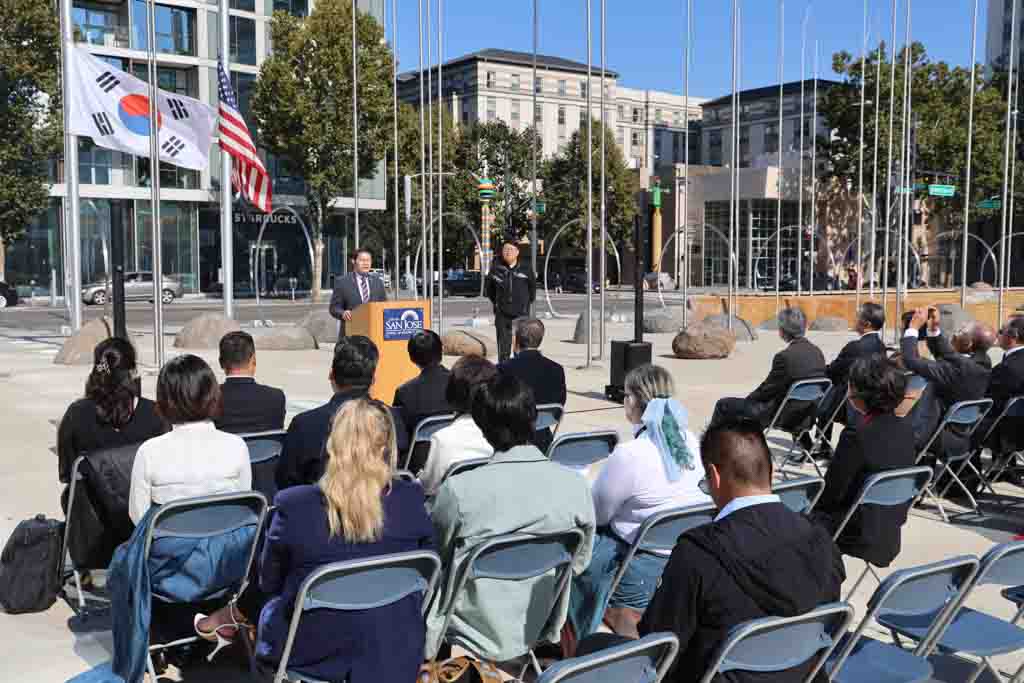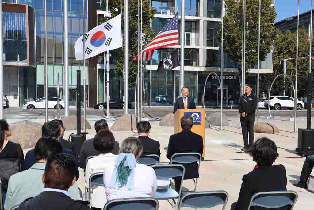 구은희 한국어교육재단 이사장도 “한글은 단순한 문자 체계가 아니라 평등과 창의, 지혜의 상징”이라며 “한글은 사회적 지위와 관계없이 누구나 배울 수 있었던 혁명적인 문자”라고 평가했다. 그는 “오늘 산호세 시청 광장에 휘날린 태극기는 한국인의 긍지이자, 이 도시에 뿌리내린 우리 공동체의 존재를 알리는 목소리”라고 말했다.