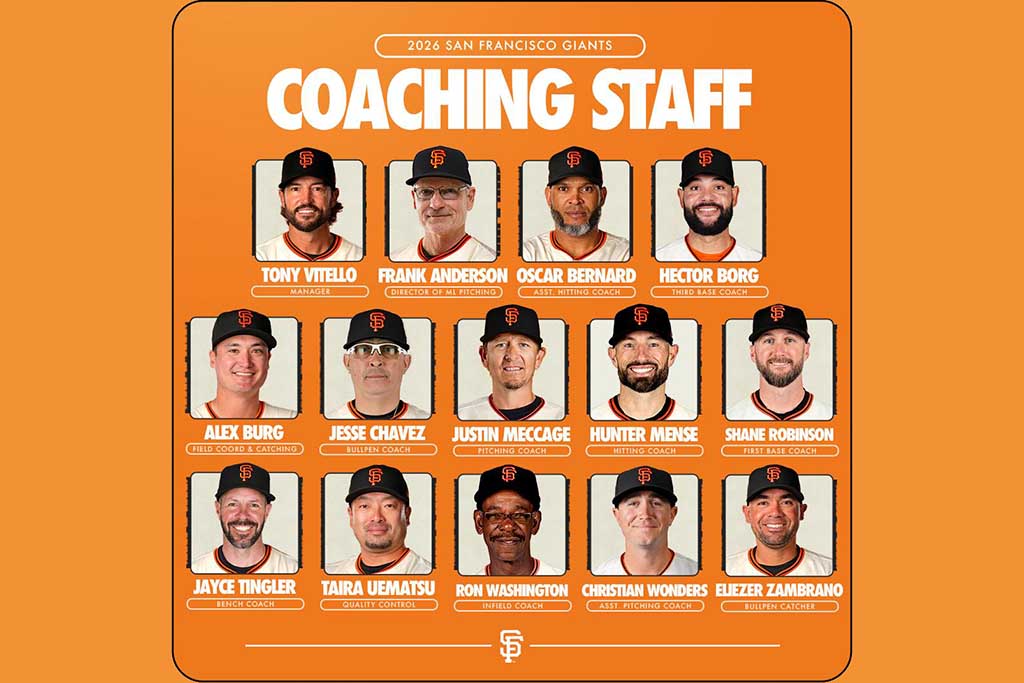 샌프란시스코 자이언츠가 토니 바이텔로 감독 체제에서 2026시즌 메이저리그 코칭스태프 구성을 공식 발표했다. 대학 야구와 마이너리그, 메이저리그를 두루 거친 지도자들과 풍부한 현장 경험을 지닌 인물들이 대거 합류하며, 구단은 선수 육성과 전력 극대화에 방점을 찍었다.