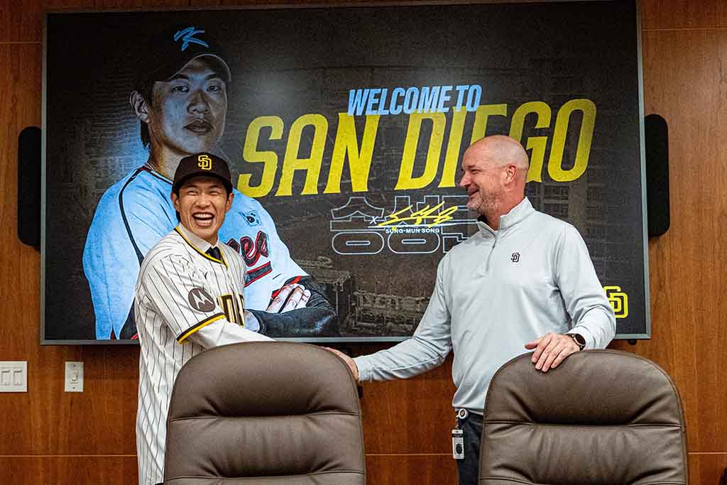 파드리스는 22일 송성문과 4년 총액 1,500만 달러 계약에 합의했다고 밝혔다. 계약에는 2029년 선수 옵션과 2030년 상호 옵션이 포함됐다. 이에 따라 파드리스는 유격수를 제외한 전 포지션 수비 경험을 갖춘 좌타 내야 자원을 확보하게 됐다.