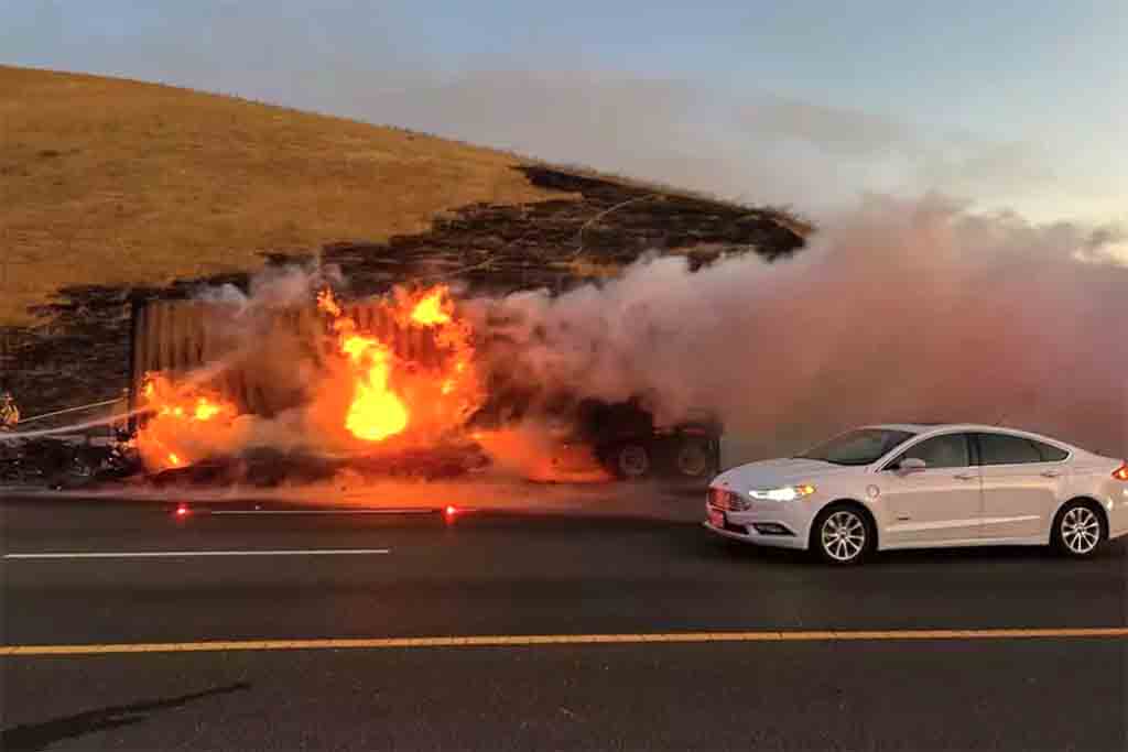 리버모어와 트레이시를 연결하는 알타몬트 패스(Altamont Pass) 구간 580번 프리웨이가 18일 새벽 도로 인근에서 발생한 트럭 화재가 산불로 번지며 리버모머 방면 통행이 수시간 동안 전면 통제됐다.