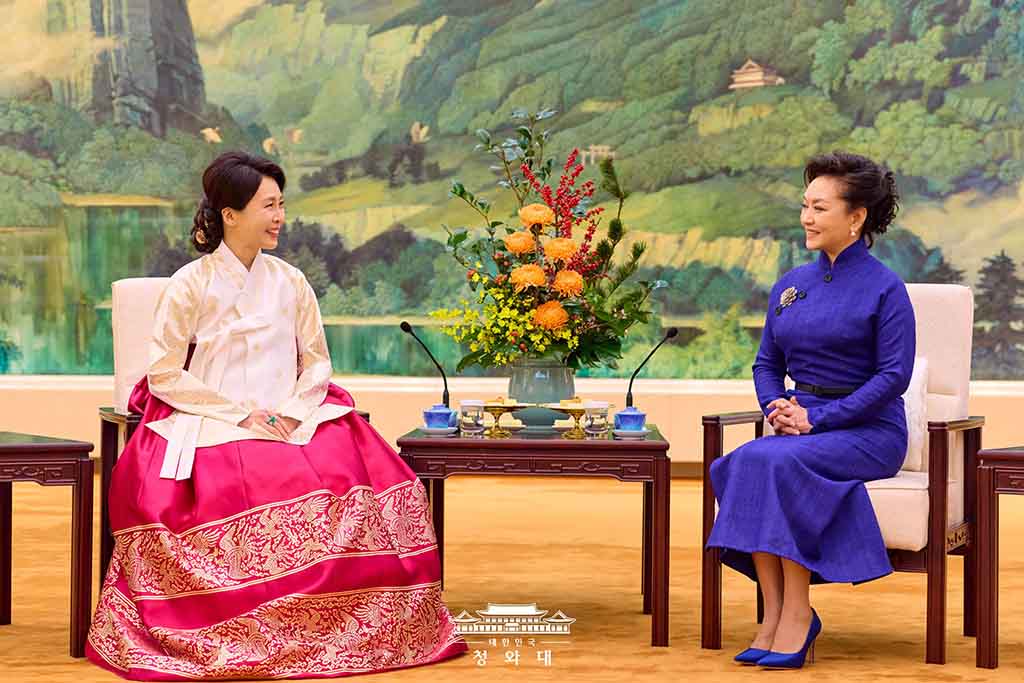 한편, 이날 이재명 대통령과 함께 국빈 방중 중인 김혜경 여사는 시진핑 주석의 부인 펑리위안 여사와 별도의 차담을 가졌다. 김 여사는 “지난해 APEC 정상회의 기간 시 주석의 국빈 방한 당시 만나지 못해 아쉬웠는데, 이렇게 짧은 시간 안에 베이징에서 다시 만나게 되어 기쁘다”며 중국 측의 환대에 감사를 표했다. 이에 펑리위안 여사는 당시 안부를 전해준 데 대해 고마움을 전하며, 이번 국빈 방중을 계기로 직접 만날 수 있어 반갑다고 화답했다.