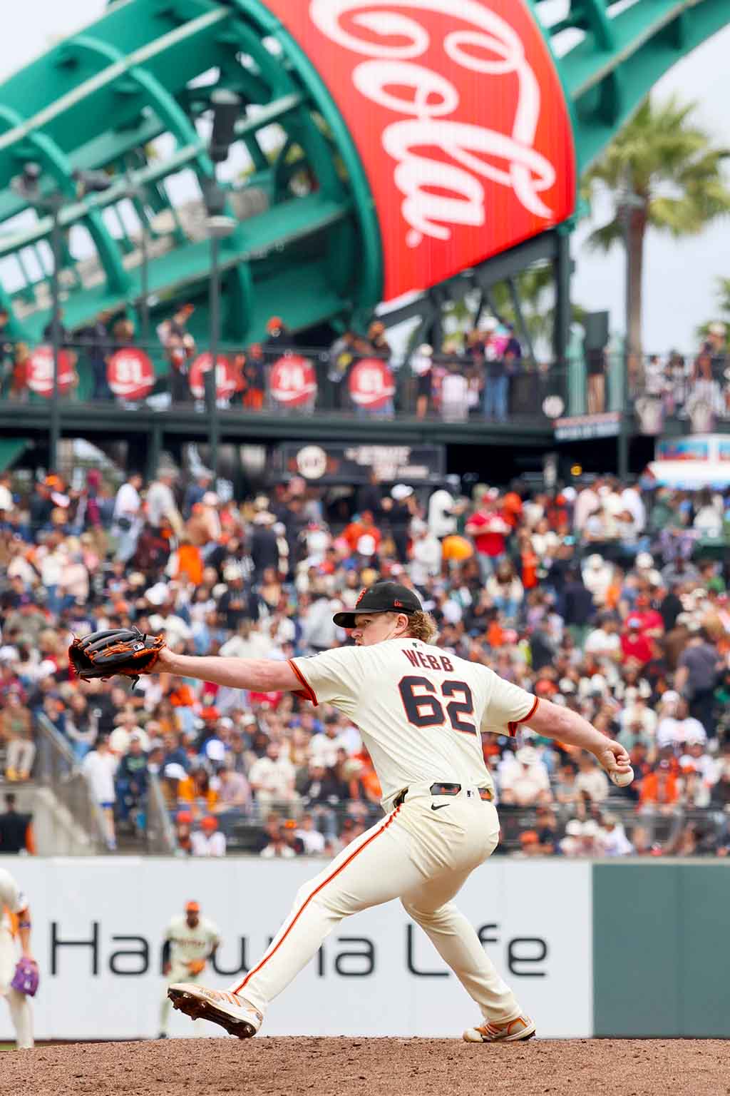 자이언츠 선발 투수 로건 웹이 역투하고 있다.