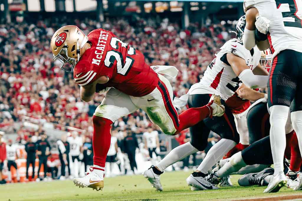 팰컨스는 직전 경기에서 버펄로를 꺾고 상승세를 타고 있었지만, 포티나이너스는 투지와 조직력에서 상대를 완전히 압도했다. 주전 쿼터백 브록 퍼디, 수비의 닉 보사, 리시버 브랜던 아이욕과 리키 피어솔까지 줄줄이 부상으로 빠진 상황에서도 선수들의 투지는 식지 않았다.