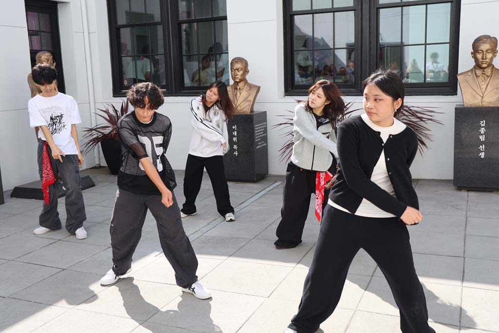 K-POP 댄스를 선보이는 학생들.
