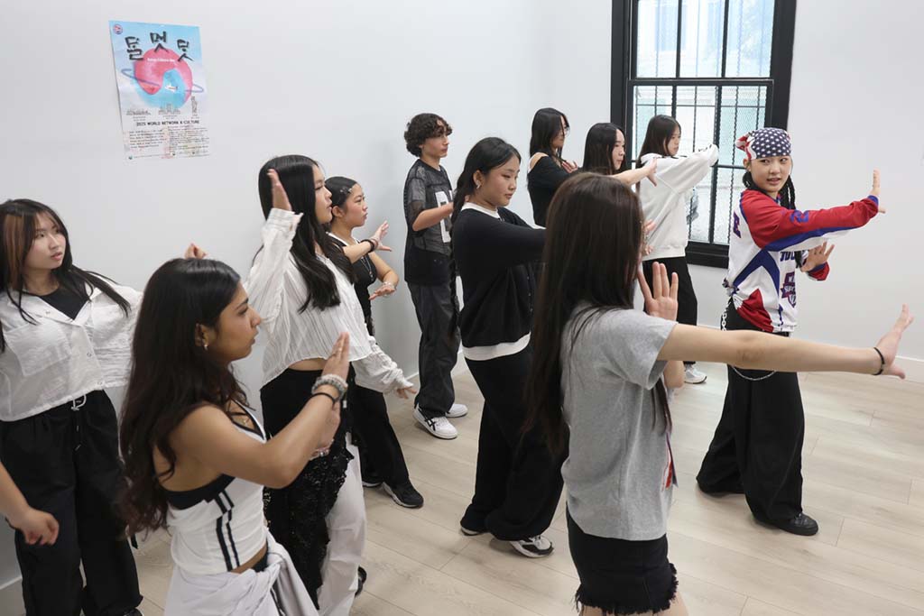 K-POP 댄스를 배우고 있는 학생들.