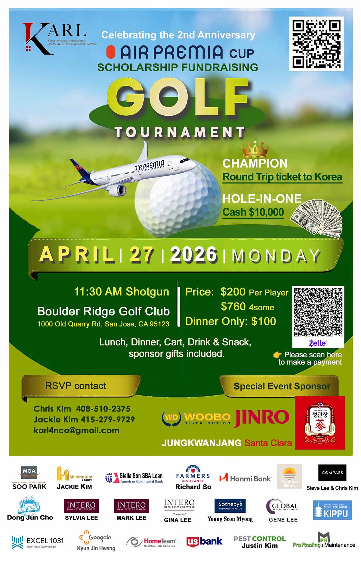 올해 대회가 더욱 주목받는 이유는 에어프레미아가 타이틀 스폰서로 참여했기 때문이다. 에어프레미아는 2024년 샌프란시스코 노선 취항 이후 북가주 한인사회의 새로운 항공 선택지로 자리 잡아 왔으며, 이번에는 취항 2주년을 기념해 장학기금 모금 골프대회에 이름을 걸고 후원에 나섰다.
