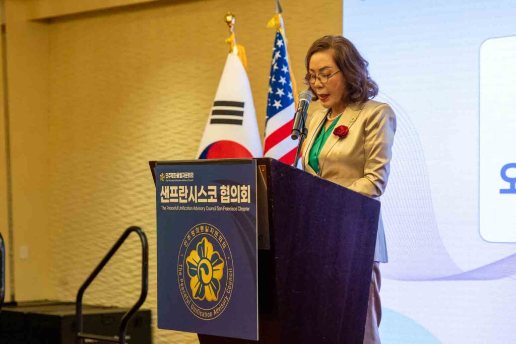 오미자 회장은 개회사에서 샌프란시스코를 한국과 태평양으로 연결된 도시이자, 다양한 문화가 만나 공존의 가치를 배우는 상징적인 공간이라고 설명했다. 특히 도산 안창호 선생의 활동과 대한인국민회의 독립운동 역사, 위안부 기림비가 지닌 평화와 인권의 의미를 언급하며 “이런 의미를 가진 샌프란시스코에서 세계 여성 컨퍼런스가 열리는 것은 매우 뜻깊고 상징적인 일”이라고 밝혔다. 이어 평화는 단순히 갈등이 없는 상태가 아니라 이해와 신뢰, 관계를 통해 만들어지는 것이라며 여성의 공감과 포용, 연대의 리더십이 갈등을 완화하고 공동체 화합을 이끄는 힘이 될 것이라고 말했다.