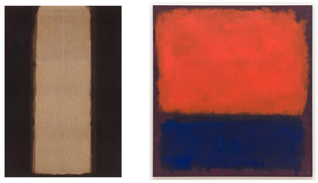 ‘RM x SFMOMA’ 특별전에 소개될 윤형근, ‘블루-엄버 ’79-C6’, 1979년(왼쪽) 알엠(RM) 소장, © 윤성렬, PKM갤러리 제공, 오른쪽은 마크 로스코(Mark Rothko), ‘넘버 14’, 1960년, 샌프란시스코 현대미술관 소장, 헬렌 크로커 러셀 기금 구입, © 1998 케이트 로스코 프리젤 & 크리스토퍼 로스코 / 아티스츠 라이츠 소사이어티(뉴욕), Photo by Katherine Du Tiel.